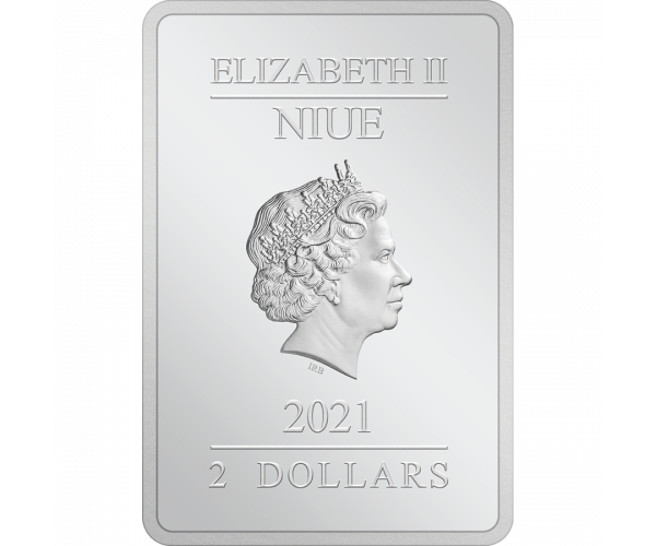 On the reverse side, the bar has a sleek, polished finish, engraved with details of its weight and purity, alongside an official insignia confirming its authenticity. Measuring approximately 50 x 28 mm, this bar is not only a beautiful representation of cinematic art but also a tangible piece of precious metal that collectors will treasure. It is protected in a custom-fit sleeve to maintain its pristine condition.