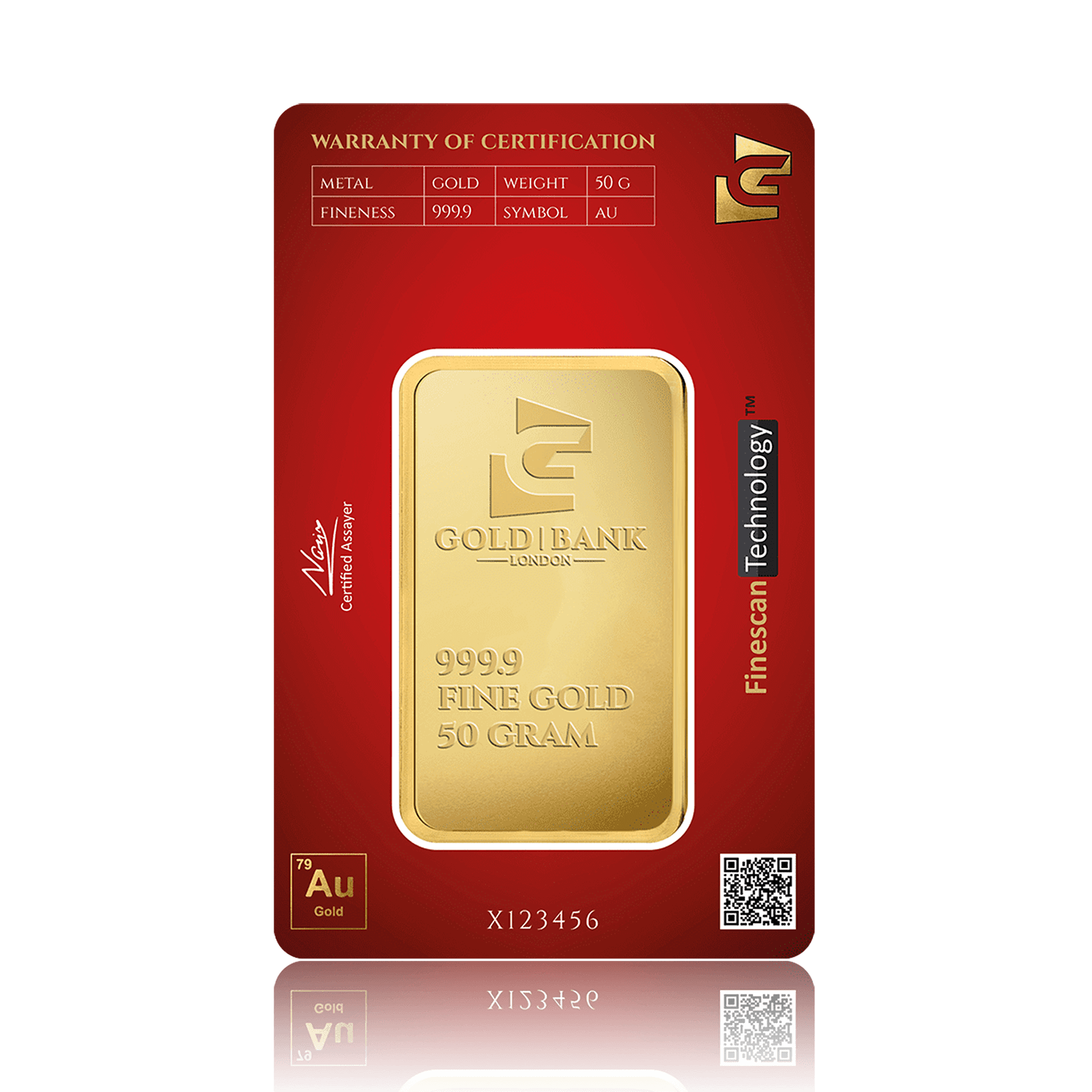 A 50 Gram Phoenix Edition Gold bar produced & manufactured by the Gold Bank®. This Bar is 24 karat Pure Gold 999.9 and weighs Exactly 50 Gram. Comes complete with certifcate embedded on the rear.