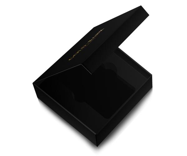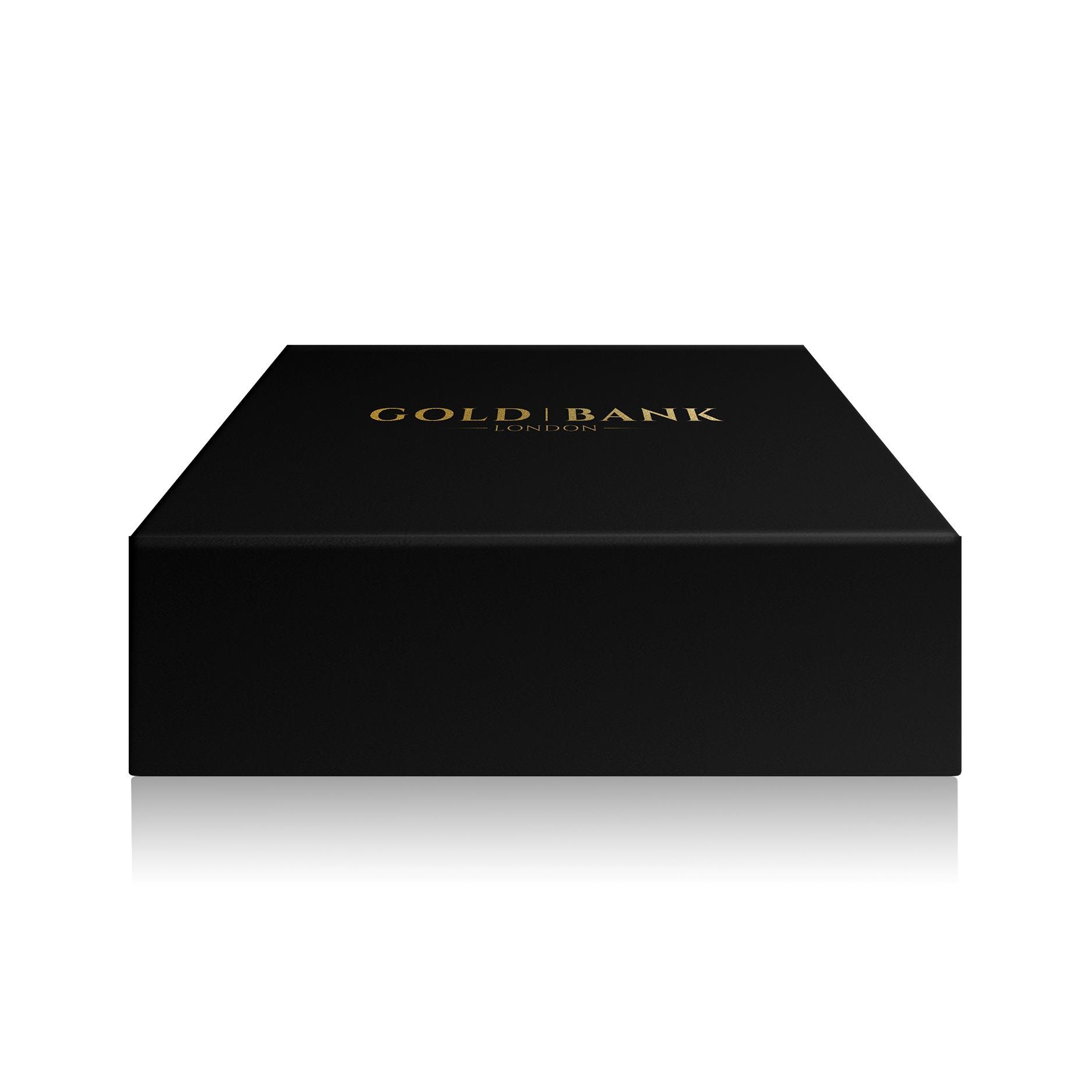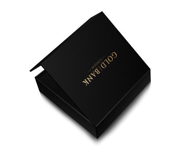 A beautiful gold bank gift box with black velvet inner lining. This product is suitable to fit the following gold bar manufacturer products (sizes up to 100g);